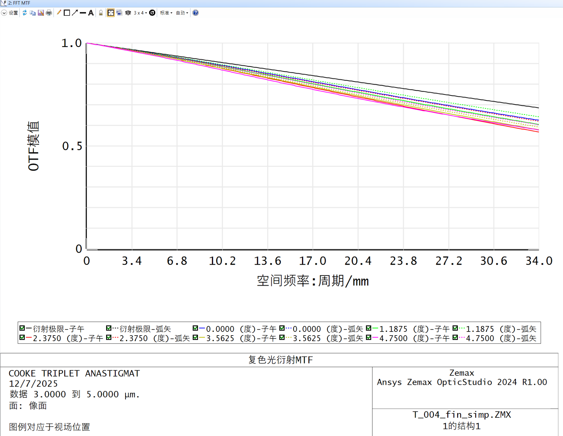 这个效果应该还可以,但是对公差分析时MTF和RMS光斑半径标准并不是很明确,目前对公差效果的判断来源于网上的信息即一些论文,发了个帖子提问,蹲回答:中红外系统设计的MTF标准
